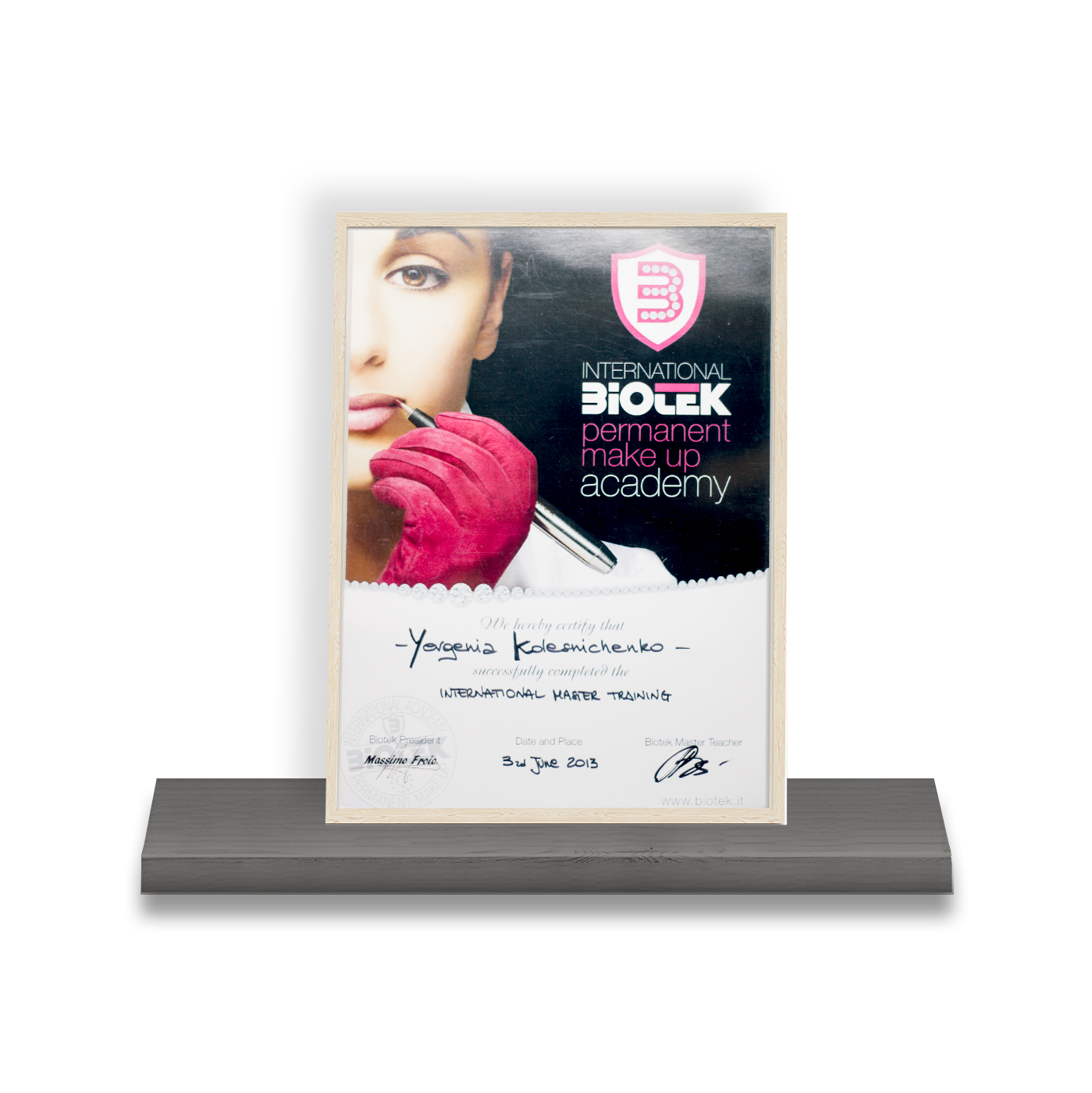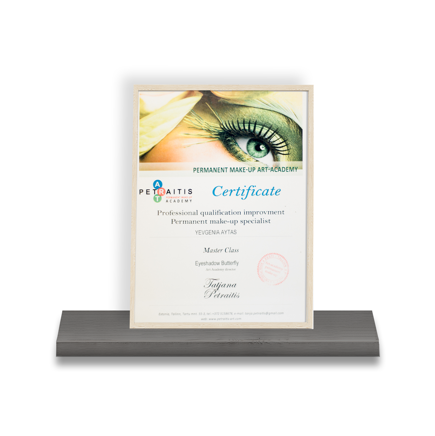 hoog aangeschreven opleidingsinstituut van Mieke Petiet waar zij voor het landelijk examen een 10 scoorde. Door deze uitmuntende score werd Yevgenia geselecteerd voor een unieke opleiding in Amsterdam die “Gruppo select” heet. Hier heeft zij de titel make-up artist verkregen.